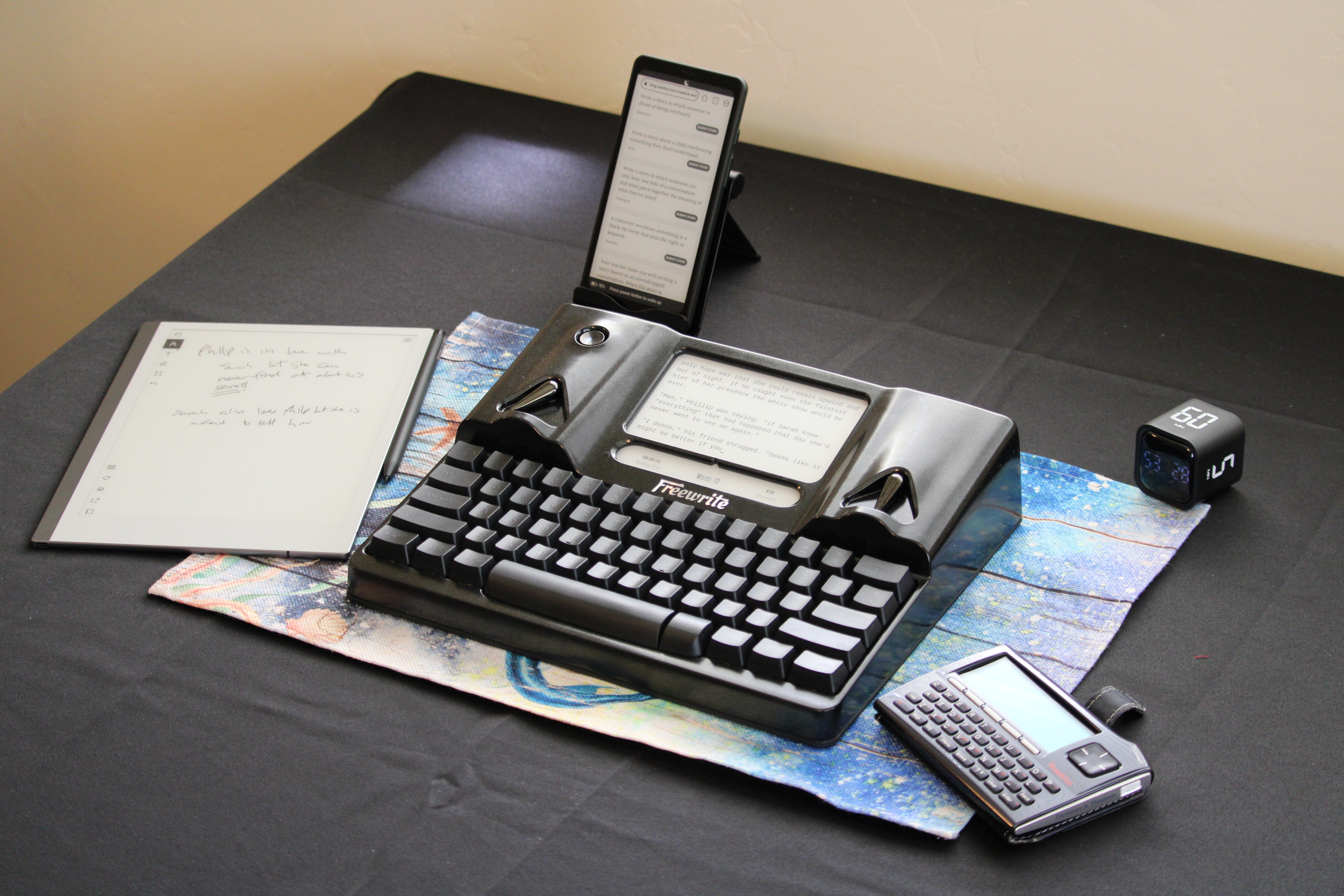 - I know it’s cliché at this point, but I derive a great deal of satisfaction from the “modern typewriter” approach to writing, especially for my first drafts. These devices are not meant to be used for editing, layout, or publication. They are meant for writing and only writing. Again, I’ve tried a variety (I will publish videos about them at some point on my YouTube channel), but my favorites by a huge margin are the Freewrite devices by Astrohaus. Their most expensive model, the Smart Typewriter, is my very favorite and the one I use most of the time. I haven’t tried their Traveler model, but I have heard the experience is similar to the original Smart Typewriter just with a chiclet style keyboard instead of mechanical switches (I’m not a keyboard connoisseur, so my opinions on switches should be largely ignored). However, if you don’t mind the chiclet keys, I can definitely recommend their Alpha model over the Traveler based on price alone. The Alpha might be a tad bit larger, but it fits nicely in every book bag I own, making it versatile and portable enough for me.